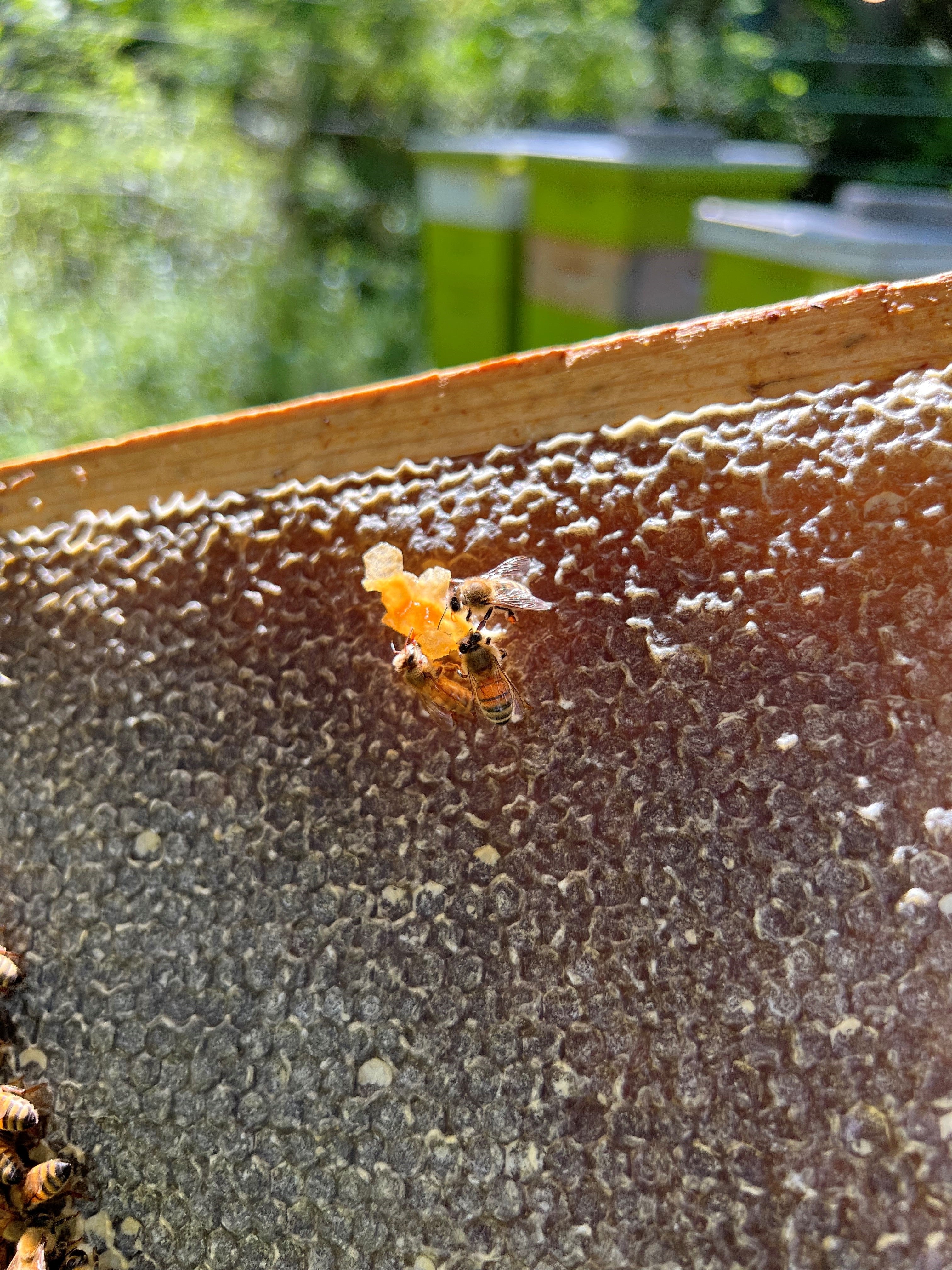 Bees working on the wax capping